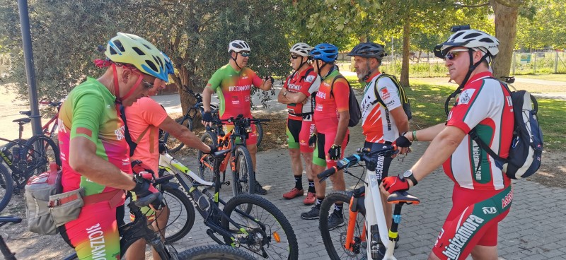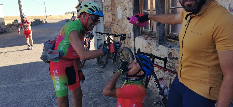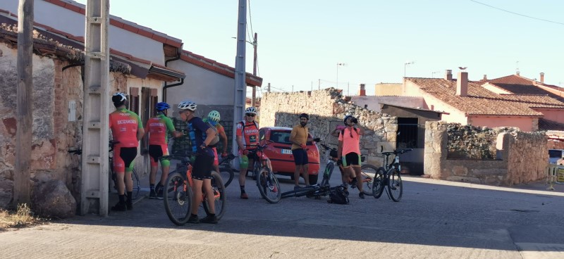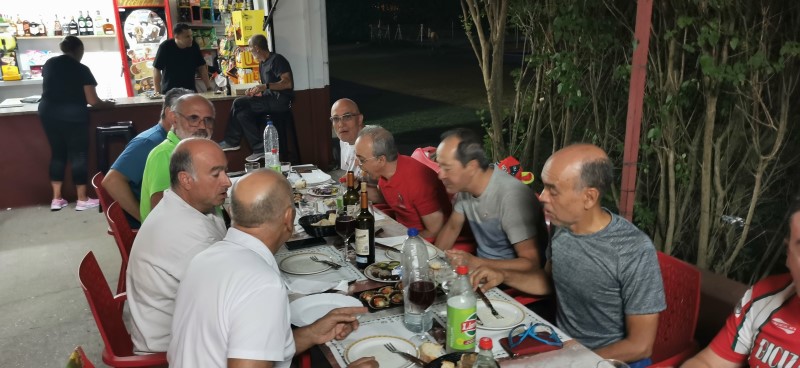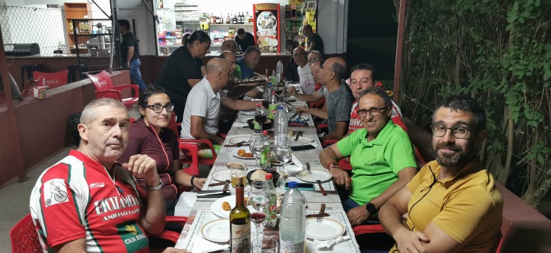 terminando con una cena en las piscinas del barrio de Pinilla. Agradable ruta, con calor, pero soportable y un pinchazo reparado por el "equipo de mecánicos" en unos cuantos minutos. |