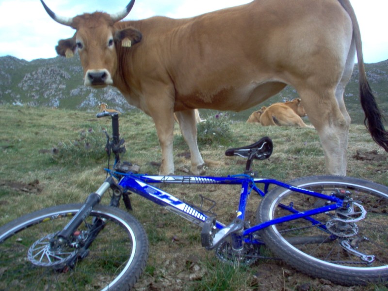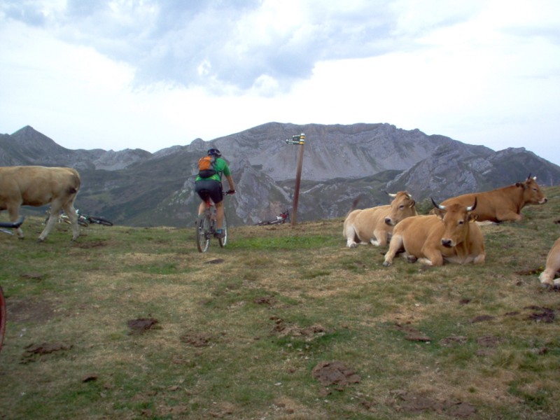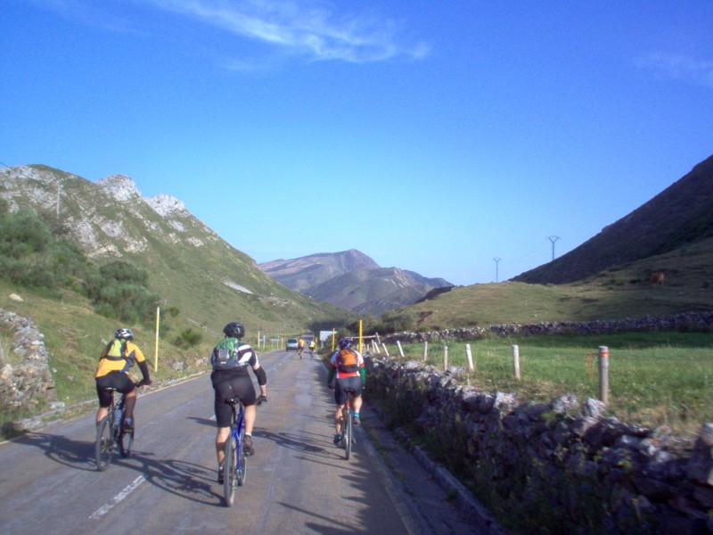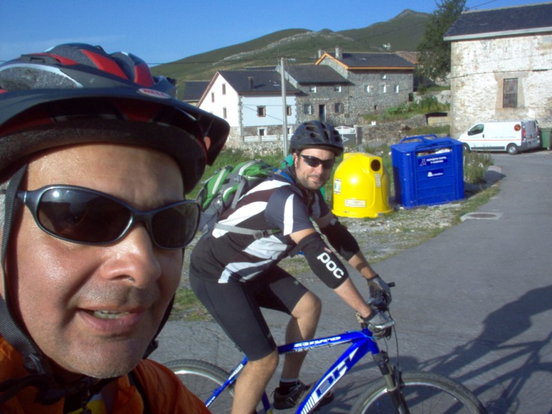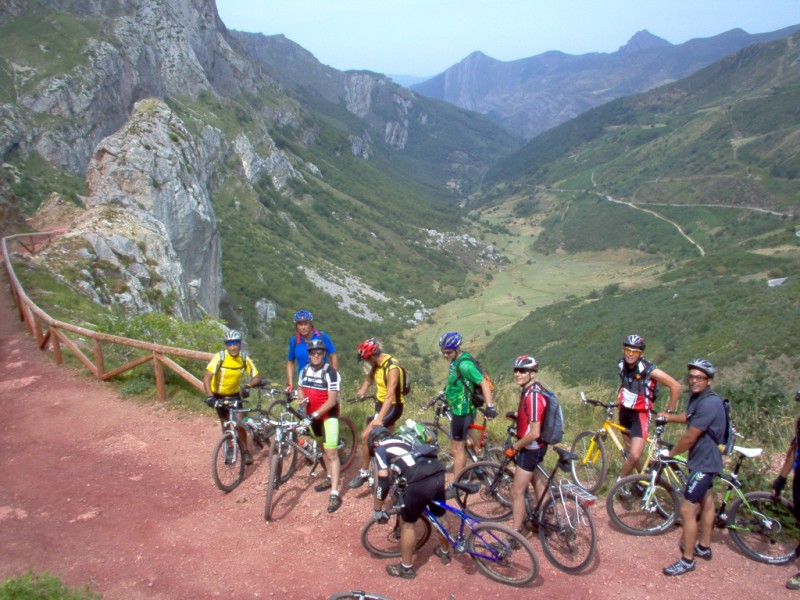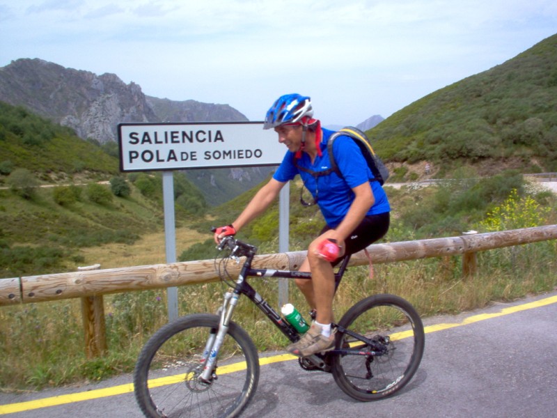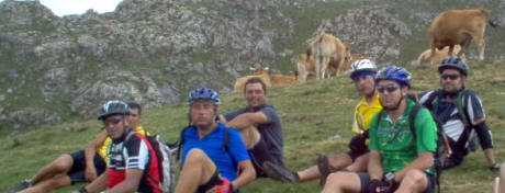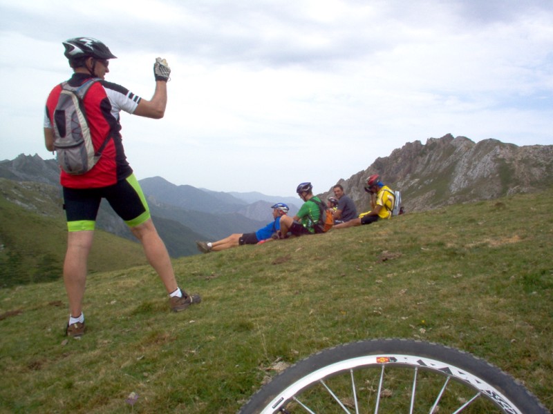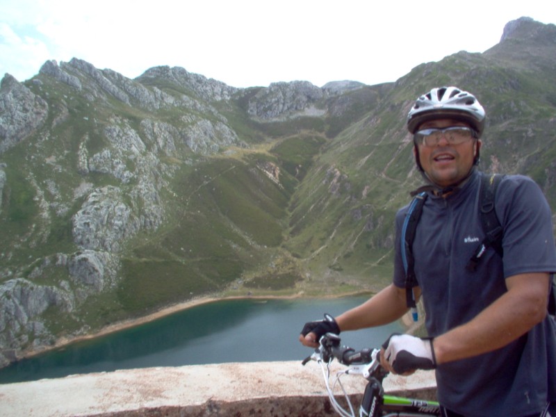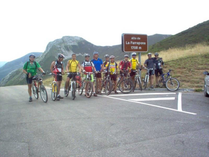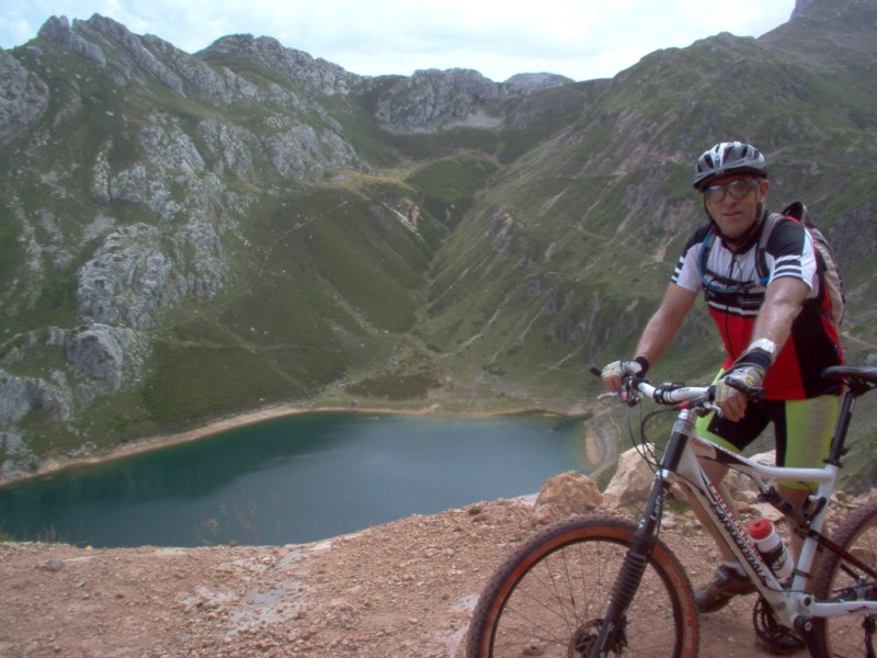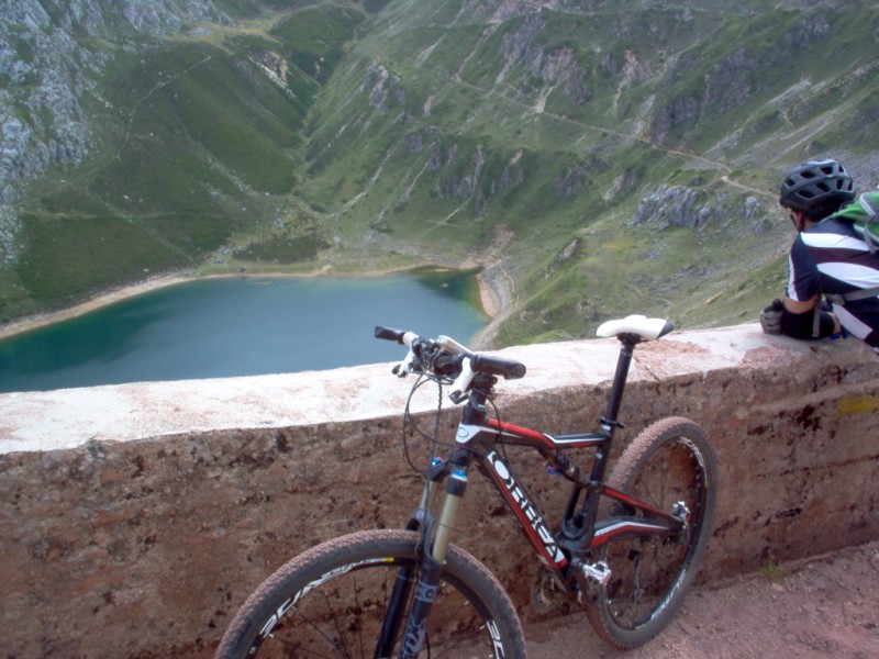 Una vez coronado el puerto continuamos ruta por caminos y senderos contemplando los lagos y las espectaculares laderas y picos, cruzándonos y adelantando a multitud de senderistas. Curradísimo el trabajo de los reporteros José Ignacio y José Palomo. Como final de ruta y para reponer fuerzas, que no sólo de pedalear vive el hombre, en Pola de Somiedo nos metimos entre pecho y espalda una sidra y unas fabes.
