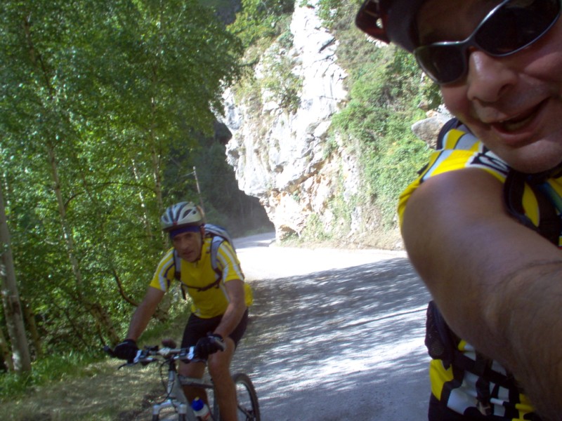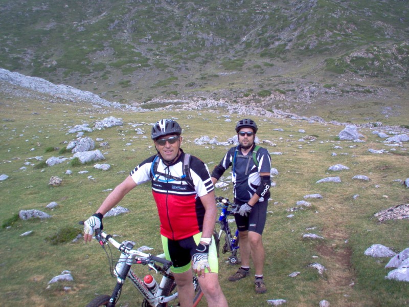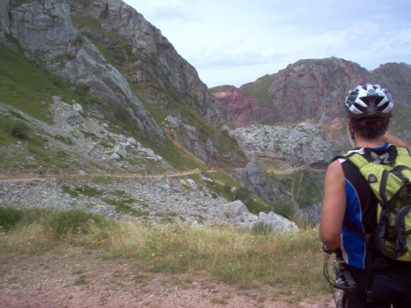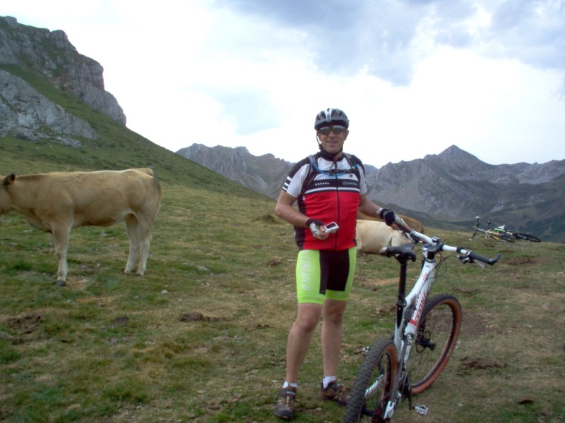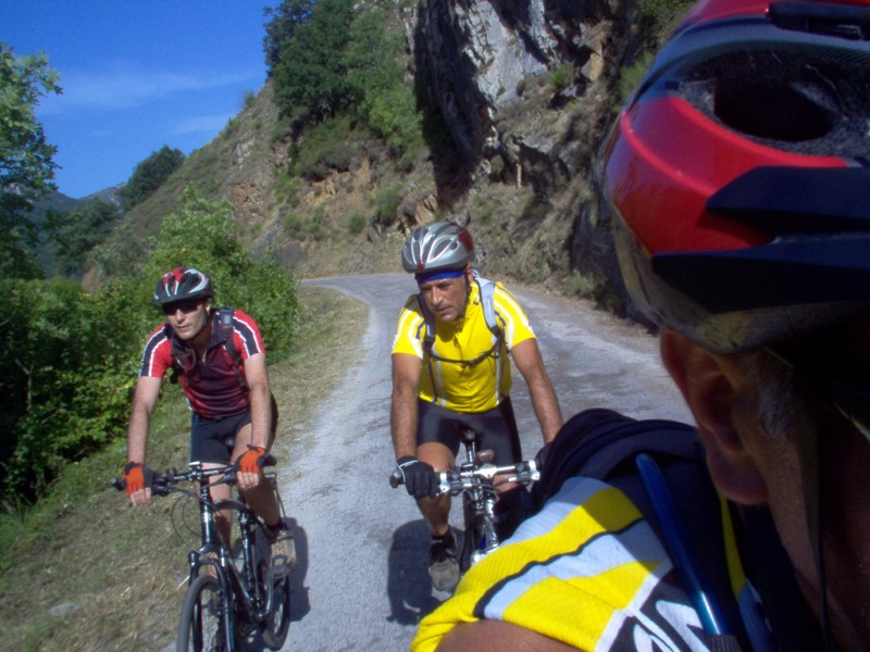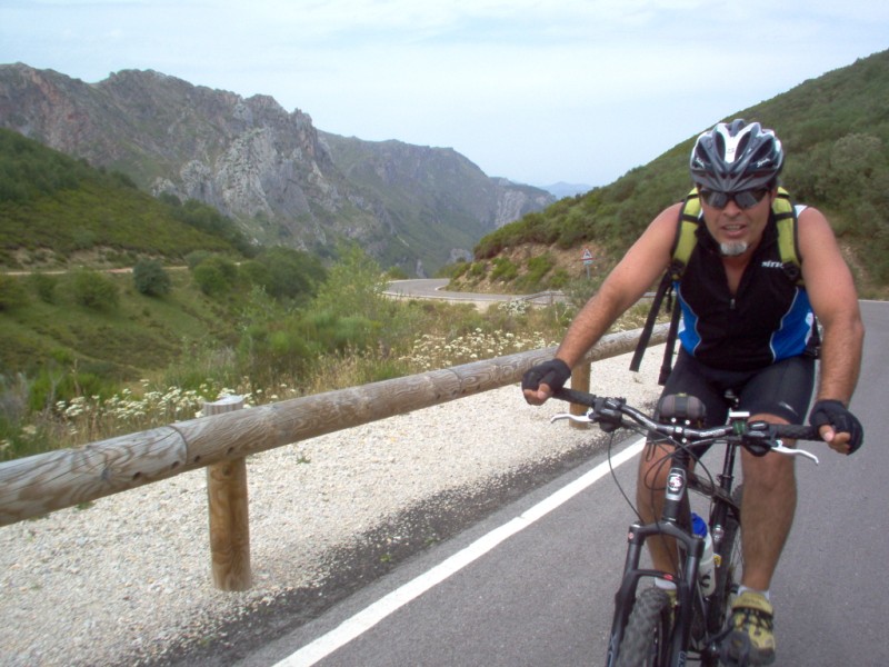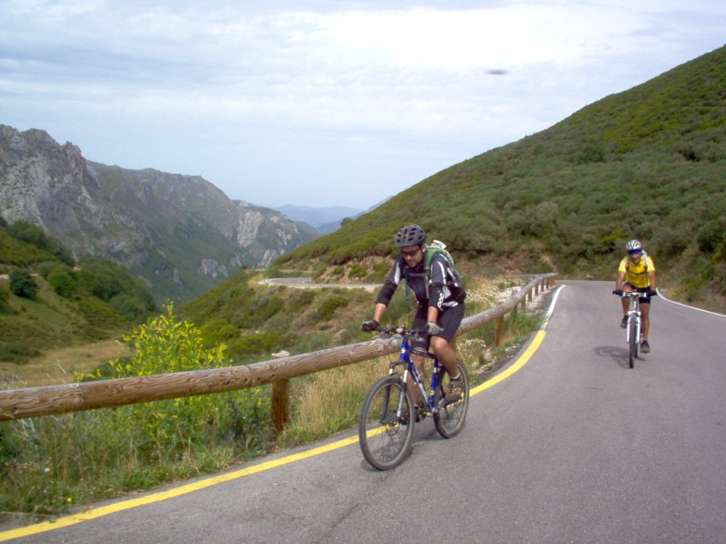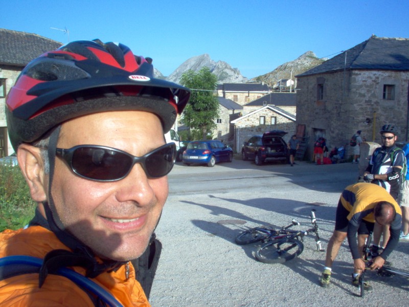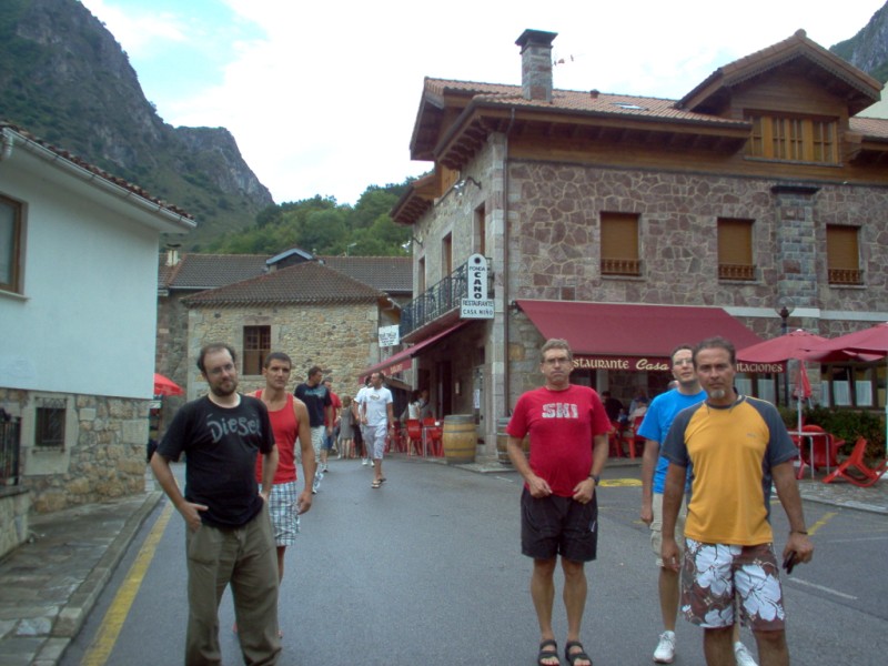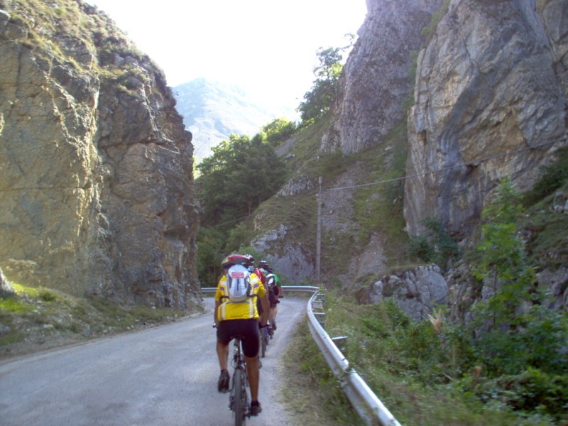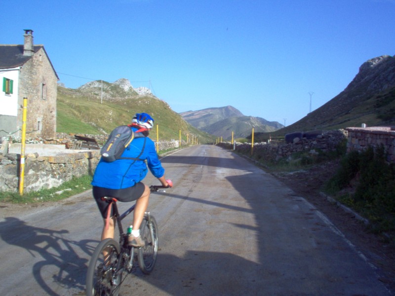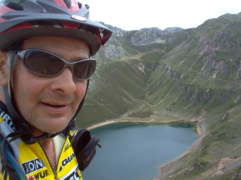 Una vez coronado el puerto continuamos ruta por caminos y senderos contemplando los lagos y las espectaculares laderas y picos, cruzándonos y adelantando a multitud de senderistas. Curradísimo el trabajo de los reporteros José Ignacio y José Palomo. Como final de ruta y para reponer fuerzas, que no sólo de pedalear vive el hombre, en Pola de Somiedo nos metimos entre pecho y espalda una sidra y unas fabes.