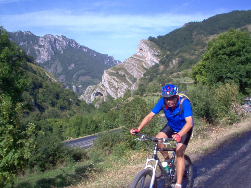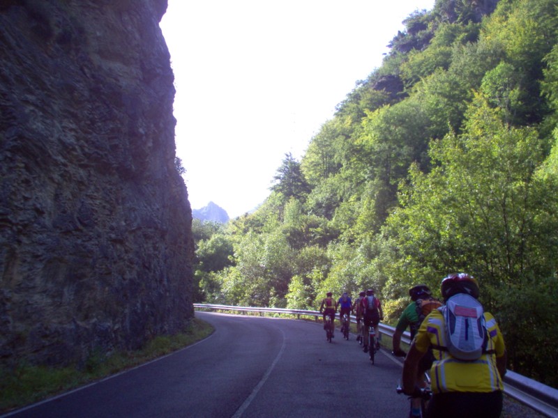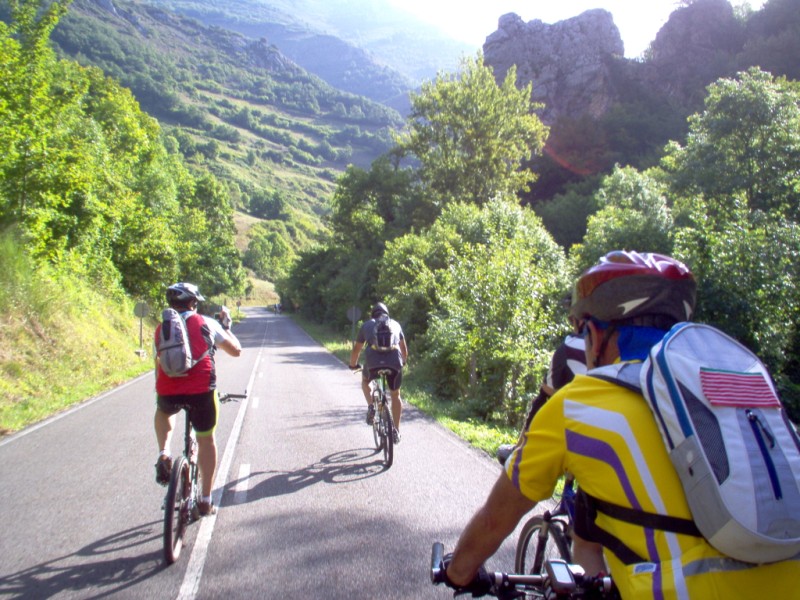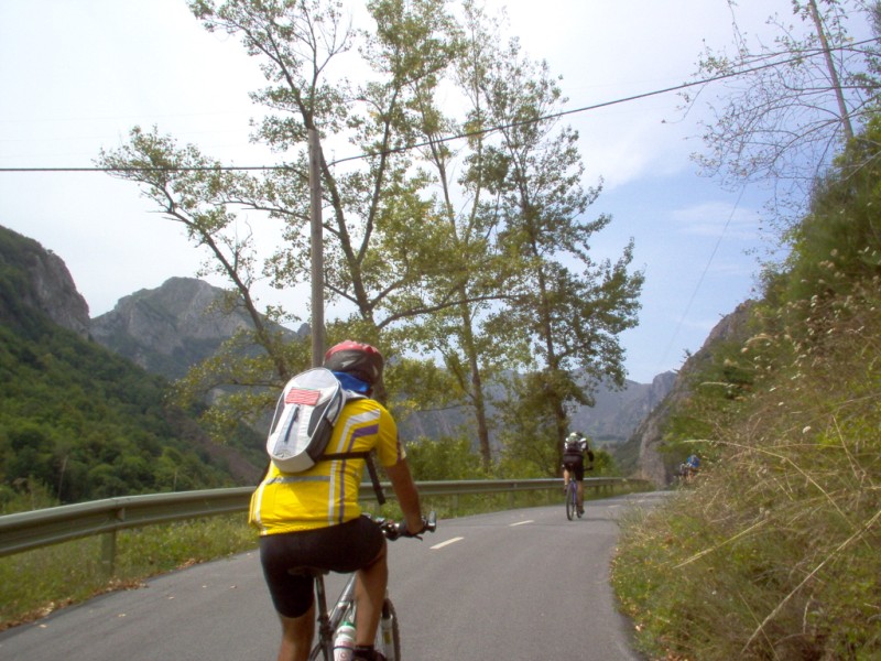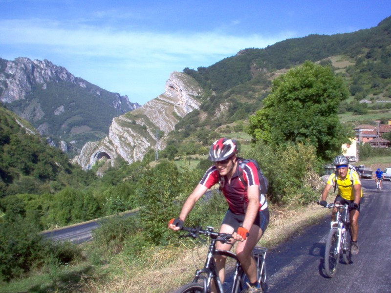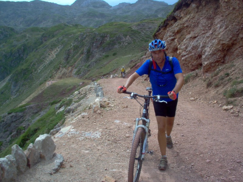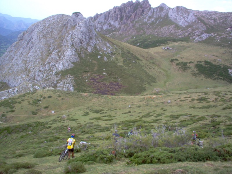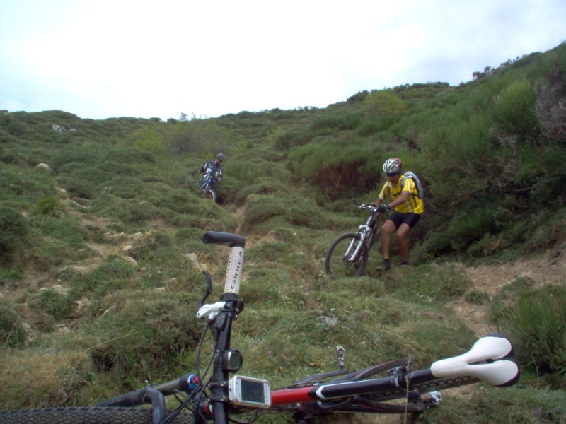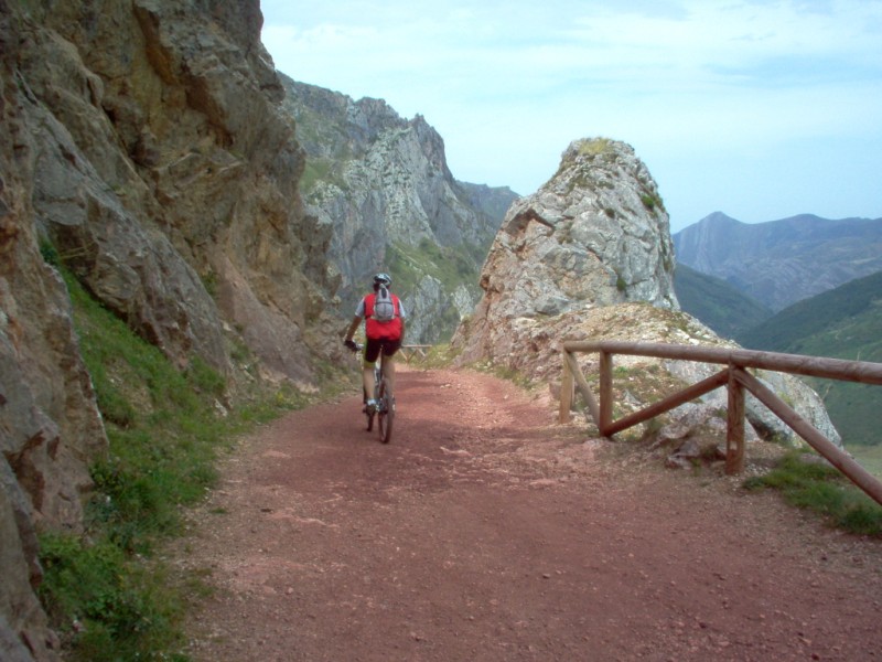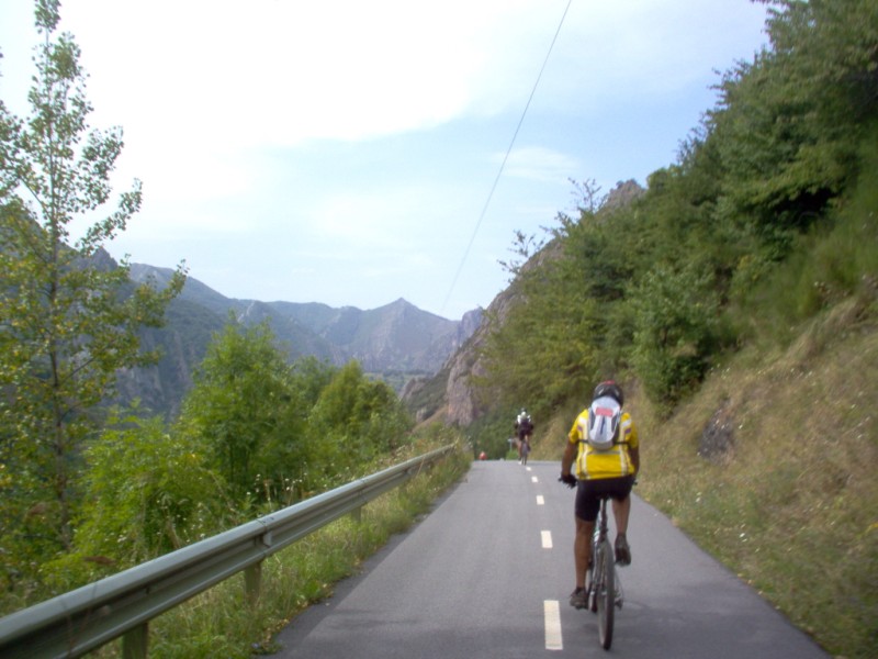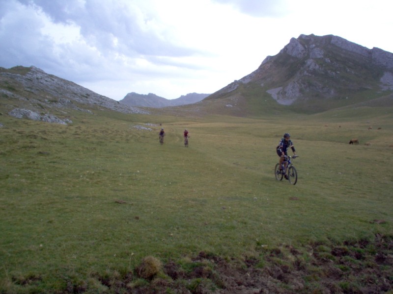 Una vez coronado el puerto continuamos ruta por caminos y senderos contemplando los lagos y las espectaculares laderas y picos, cruzándonos y adelantando a multitud de senderistas. Curradísimo el trabajo de los reporteros José Ignacio y José Palomo. Como final de ruta y para reponer fuerzas, que no sólo de pedalear vive el hombre, en Pola de Somiedo nos metimos entre pecho y espalda una sidra y unas fabes.
