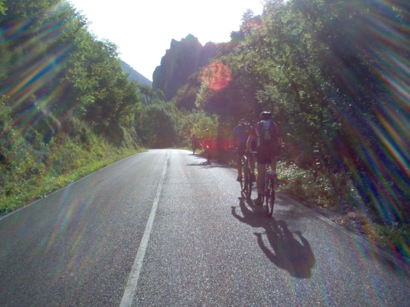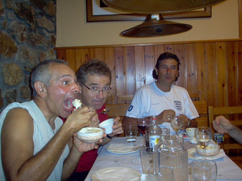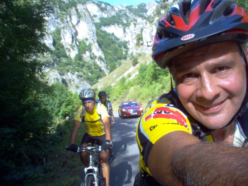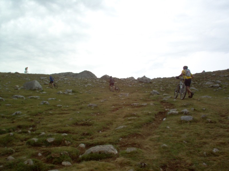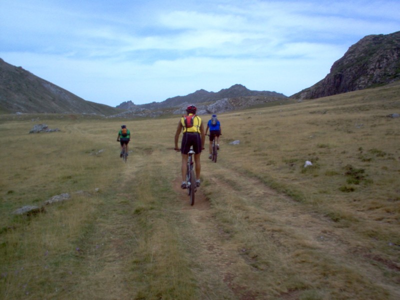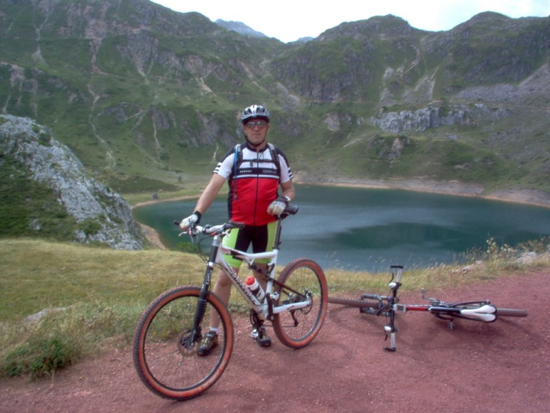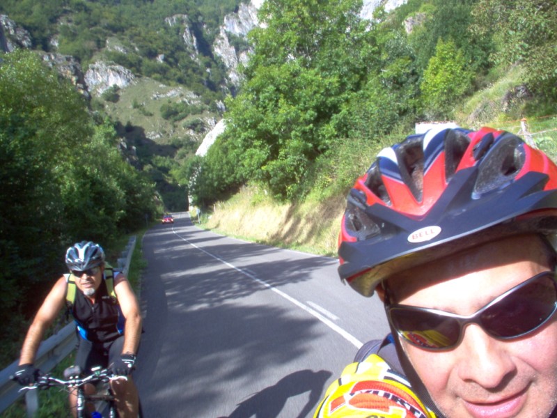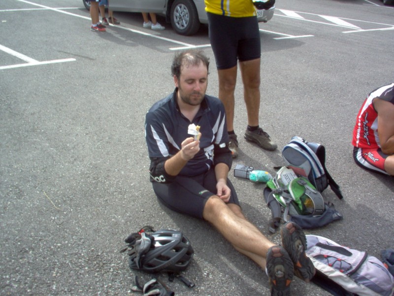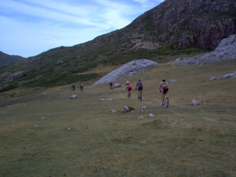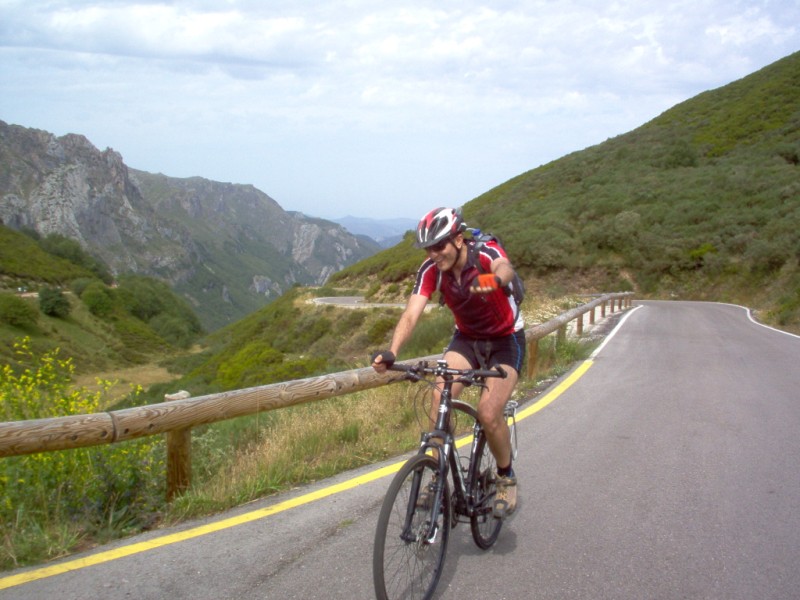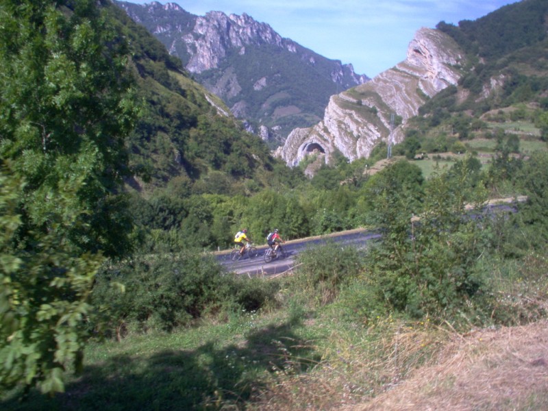 Una vez coronado el puerto continuamos ruta por caminos y senderos contemplando los lagos y las espectaculares laderas y picos, cruzándonos y adelantando a multitud de senderistas. Curradísimo el trabajo de los reporteros José Ignacio y José Palomo. Como final de ruta y para reponer fuerzas, que no sólo de pedalear vive el hombre, en Pola de Somiedo nos metimos entre pecho y espalda una sidra y unas fabes.